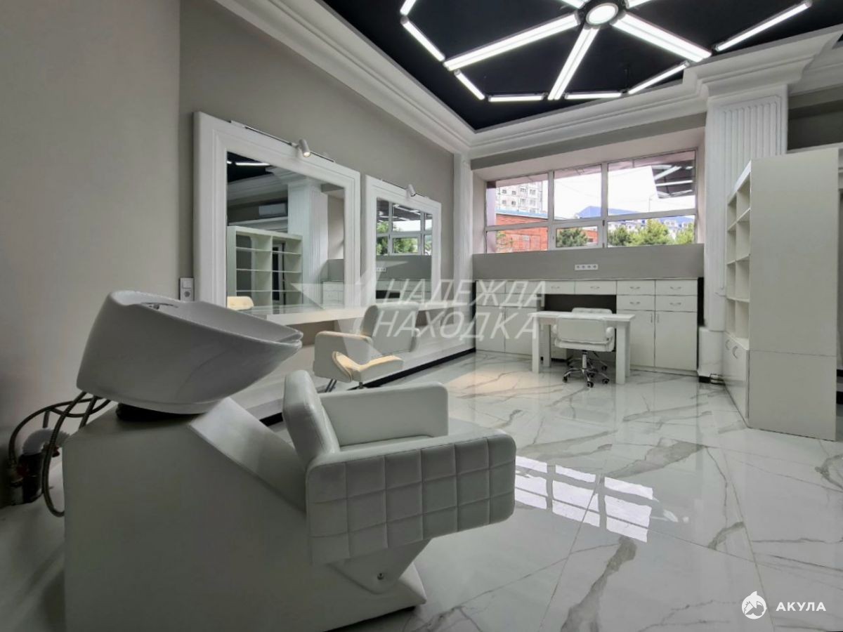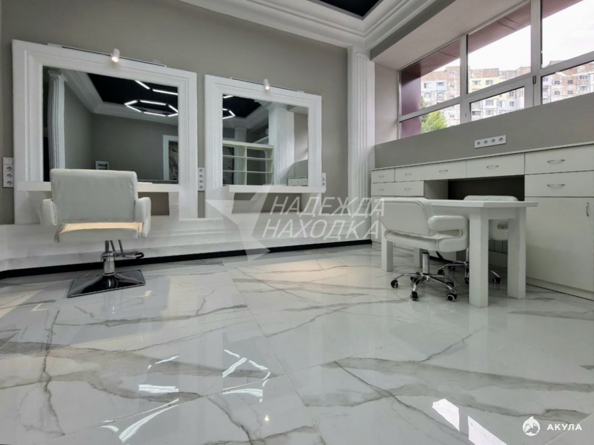 Внутри новый ремонт. Установлено оборудование: кресла, зеркала, зона ресепшн, парикмахерская мойка, шкафы и витрина, маникюрный стол. Все в хорошем состоянии. Подведена вода и канализация. Установлен титан, кондиционер.