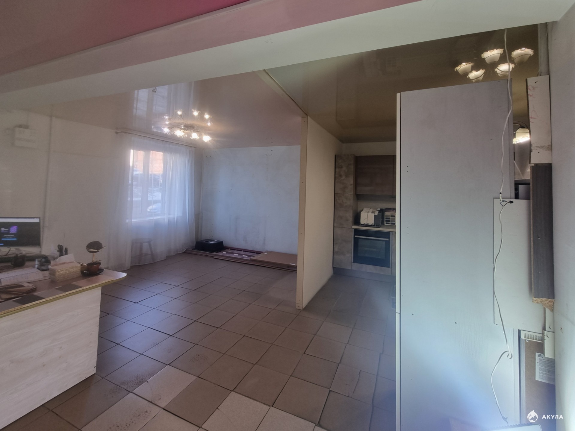 На полу плитка, есть мокрая точка (санузел), установлены кондиционеры.