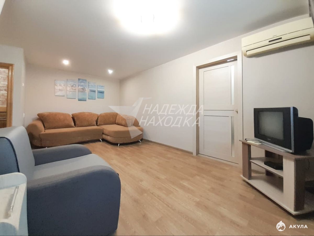 Полностью мебелирована, в наличии вся необходимая мебель (2 дивана, шкаф, 2 кресла, журнальный столик, кухонный гарнитур, обеденный стол).