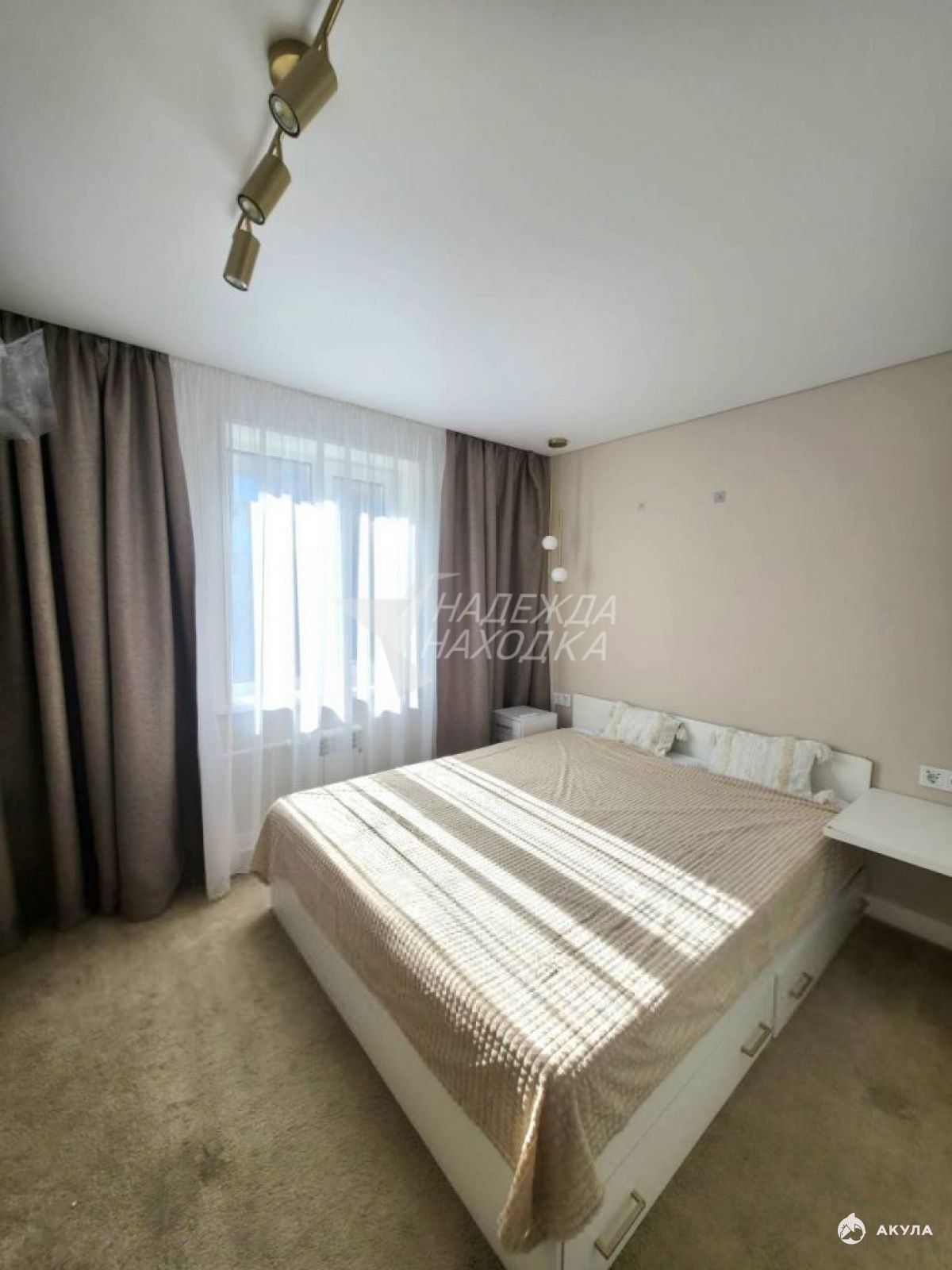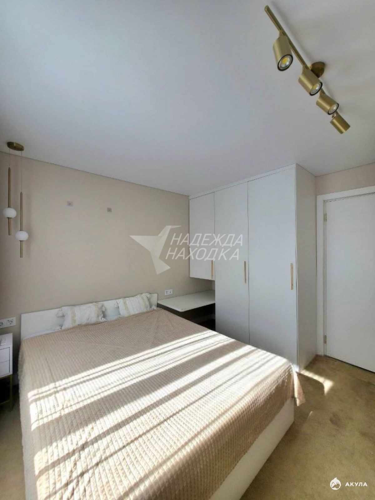 Двуспальная кровать, встроенный шкаф, прикроватные тумбы
